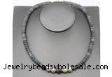 CFN218 4*6mm faceted rondelle labradorite & potato white freshwater pearl necklace
